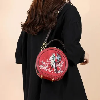 Vintage Ethnic Round Crossbody Bag for Women – PU Leather Shoulder Handbag