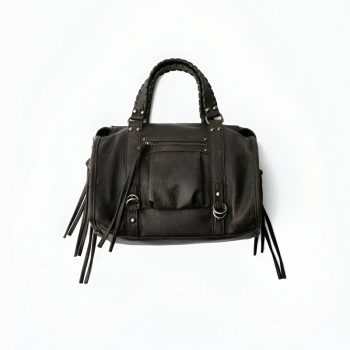Worn-Effect Bowling Baguette Handbag with Strap for Women