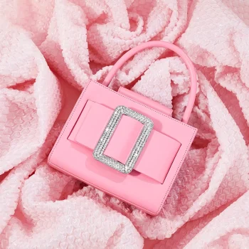 Pink Leather Boxy Evening Shoulder Bag with Diamond Accent