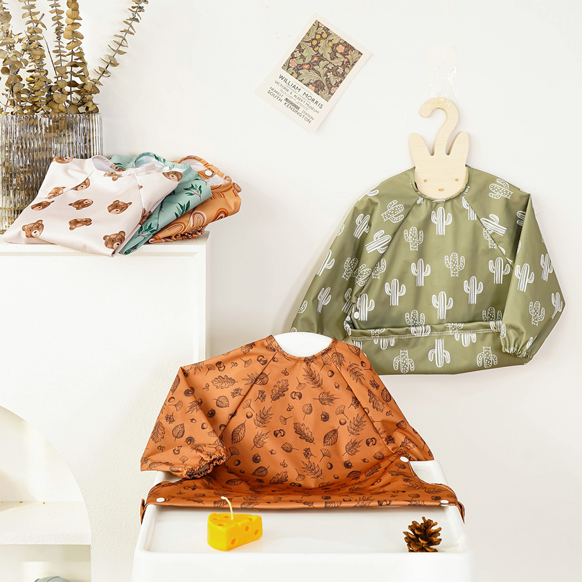 Use this bib with confidence in high chairs, strollers, or at the table. It’s perfect for both feeding babies and toddlers, and its stylish long sleeves mean it can double as an art smock to protect clothes during painting or crafting. With its adorable design and practical application, this bib makes feeding time an enjoyable experience for both parent and child.