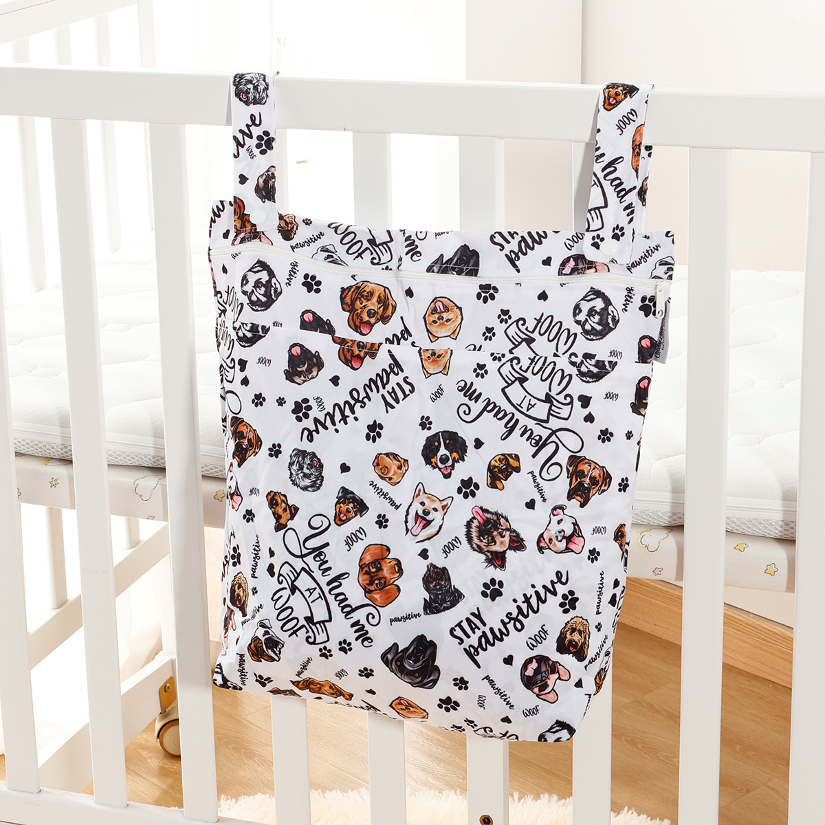 Reusable Hanging Wet & Dry Diaper Bag with Double Zipper Pockets