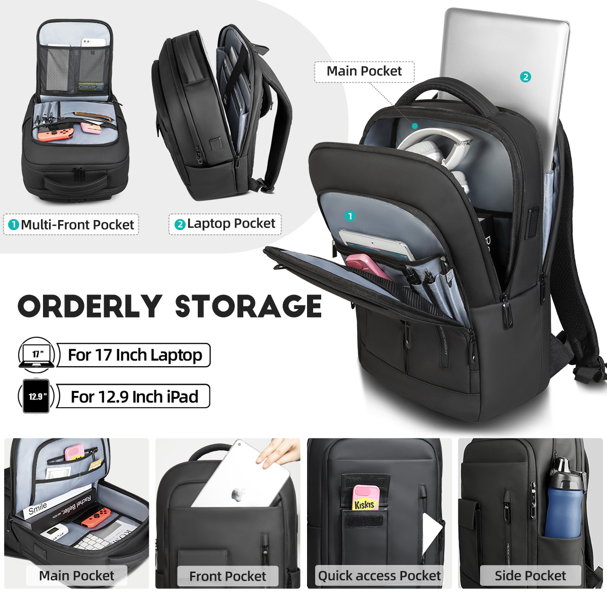 • Huge Multi-Pocket Capacity: Easily store notebooks, gadgets, clothes, and more with a structured layout.