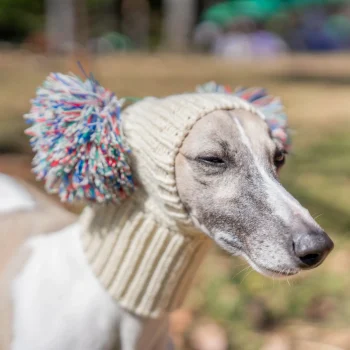 Cozy Wool Dog Hat with Fur Pom for Italian Greyhounds, Whippets & Large Breeds