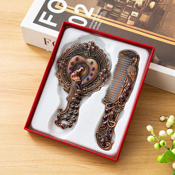 Vintage Peacock Mirror & Comb Gift Set – Elegant Metal Handheld Makeup Mirror with Handle