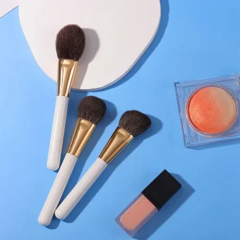 3-Piece Goat Hair Stippling Makeup Brush Set – Highlight, Blush & Loose Powder