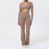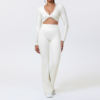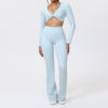 Step into comfort and style with this 2-piece activewear set designed for the modern woman. Featuring a twist-knot long-sleeved cropped sports top and high-waisted flared yoga pants, this set combines fashion and function effortlessly. Made with a soft and stretchy blend of polyester and spandex, it moves with your body, offering ultimate flexibility whether you’re hitting the yoga mat, running errands, or relaxing at home.
