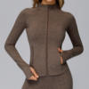The long-sleeve zip-up design provides adjustable coverage, while the lightweight knit construction ensures unrestricted movement. Two convenient side pockets let you keep your keys, phone, or essentials close by. The sleek, form-fitting cut flatters every body shape, making it easy to transition from the gym to casual outings in style.