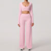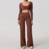 Backless Long Sleeve Yoga Top & Wide Leg Fitness Pants Set