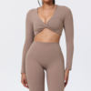 Our twist-knot long-sleeve cropped top is designed to be more than just functional. With its sleek and flattering cut, it provides the perfect balance of performance and fashion. The stretchy fabric ensures a perfect fit, while the eco-friendly material keeps you in harmony with nature. Its full-sleeve design offers extra coverage, making it a great choice for any season. Whether you’re lifting weights, stretching in yoga, or heading out for a run, this top works as hard as you do.
