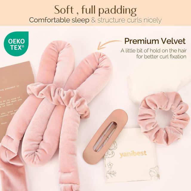 This curling headband is crafted with care using premium velvet fabric that’s luxuriously soft and gentle on your hair. The non-slip texture ensures your hair stays securely wrapped while you sleep. With a flexible inner design filled with soft cotton, you can rest comfortably all night without tangles or discomfort. Measuring approximately 1.4 x 59 inches, it fits all hair lengths and types, offering stunning results for straight, wavy, or fine hair.