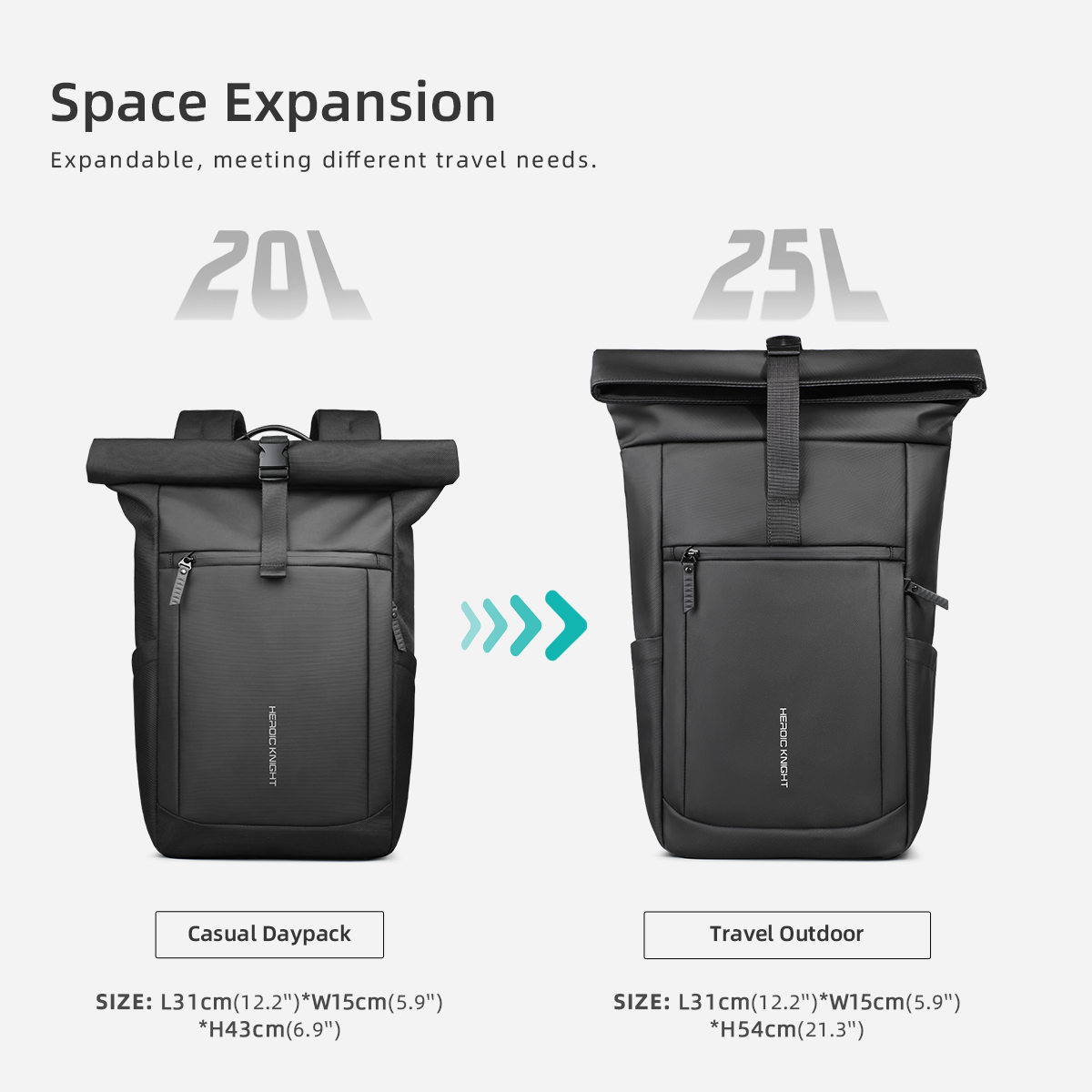 Heroic Knight Rolltop Laptop Backpack Expandable Water-Resistant Compartment Work Men's Stylish Backpack Casual Travel Backpack
