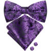 Purple Floral Silk Bow Tie, Pocket Square & Cufflinks Set for Men