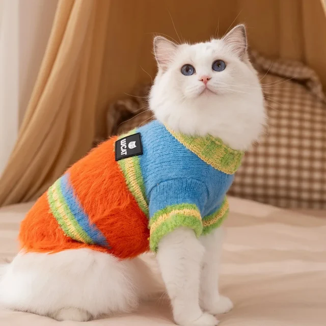 Keep your furry companion warm, comfortable, and irresistibly cute during chilly days with this cozy high-neck knit pet sweater. Designed for small dogs and puppies, this soft pullover delivers the perfect balance of warmth and breathability. The classic striped look adds a fashionable touch, while the snug fit helps reduce shedding around your home. Whether your pet is lounging indoors or heading out for a winter walk, this sweater keeps them feeling safe, relaxed, and stylish.