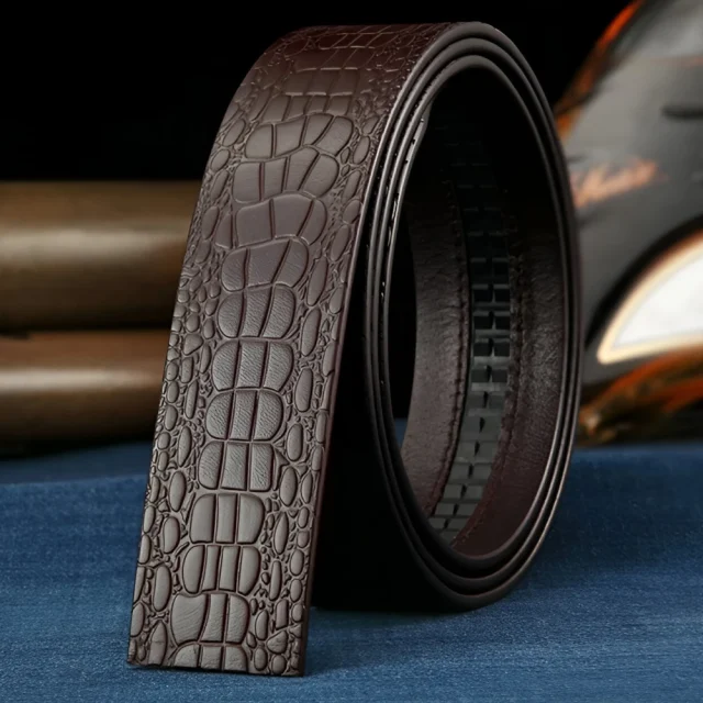 What sets this belt apart is its automatic closure system, which eliminates the need for traditional buckles. This innovative design ensures quick adjustments for a perfect fit, providing convenience while maintaining a sharp look. The genuine leather with a crocodile grain pattern gives the belt a refined, textured look, elevating any outfit with its distinctive style. Perfect for those who value quality, comfort, and elegance, this belt offers both luxury and practicality in one piece.