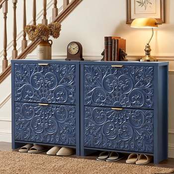 2-Tier Slim Shoe Cabinet Set – Narrow Storage Organizer for Entryway or Hallway in Night Blue