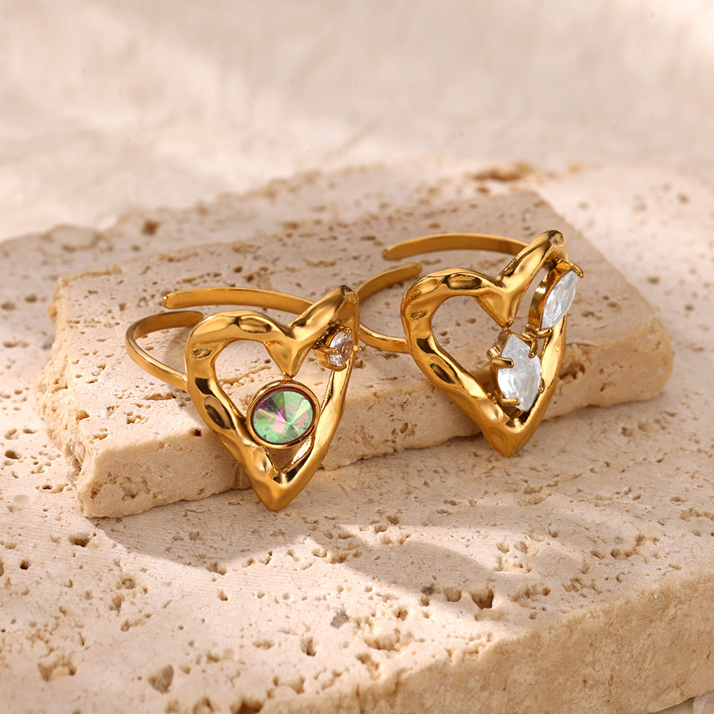 Gold Heart Hollow Open Ring for Women – Trendy Stainless Steel Jewelry