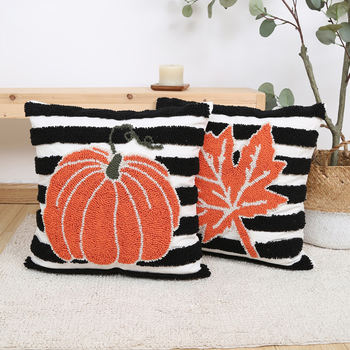 Geometric Tufted Pumpkin Throw Pillow Cover 18x18in – Autumn Harvest Accent Cushion