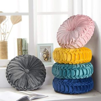 Set of 2 Velvet Round Pumpkin Cushions – Handcrafted Pleated Decorative Pillows