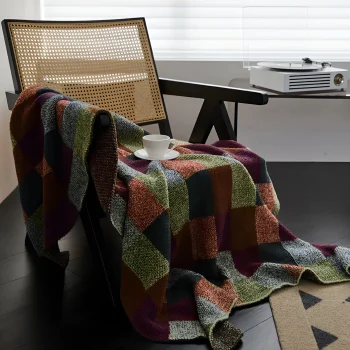 Cozy Retro Knitted Check Blanket – Soft Warm Bed & Sofa Throw