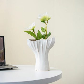 Ceramic Geometric Folding Cups Flower Vase – Modern Home Decoration