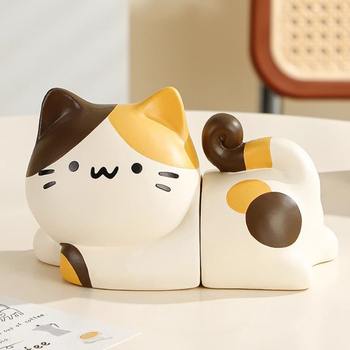 Cute Ceramic Cat Bookcase Decor – Adorable Animal Figurines for Home & Office