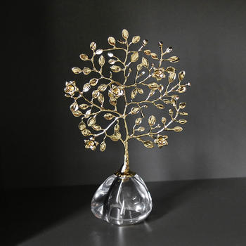 Golden Crystal Money Tree Metal Ornament – Elegant Home Decor