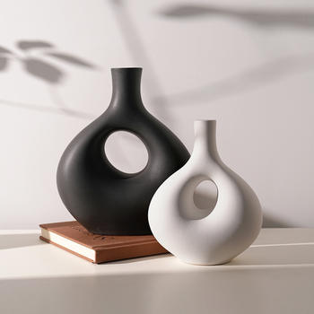 Modern Black and White Striped Ceramic Vase – Geometric Hollow Design