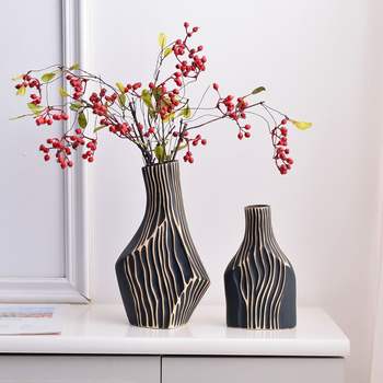 Modern Ceramic Vase with Geometric Vertical Lines