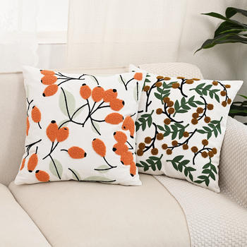 Floral Embroidered Cushion Cover 18×18 Inches Cotton Jacquard Pillowcase