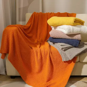 Warm Velvet Knitted Throw Blanket for Sofa & Bedding – Soft Solid Color Home Decor