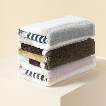 Soft Organic Cotton Striped Face Towel, Quick-Dry Terry, 16 x 35 in