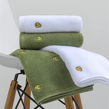 Avocado Embroidered Cotton Hand Towel 13.4 x 29.5 in Soft & Absorbent