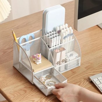 7-Grid Metal Desk Organizer – Multi-Functional Pen Holder for Modern Workspace