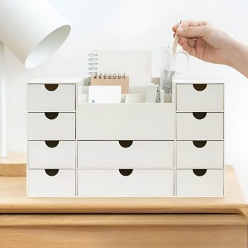 Nordic Minimalist Desk Organizer with Drawer – Multi-Layer Storage Box