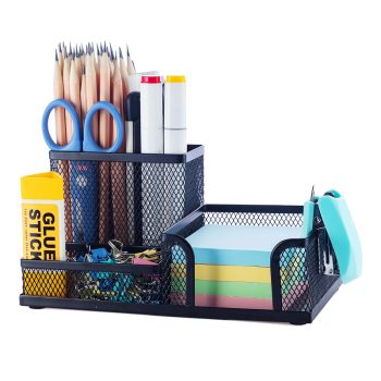 Black Mesh 3-Tier Desk Organizer with Pencil Holder – Multifunctional Storage Solution