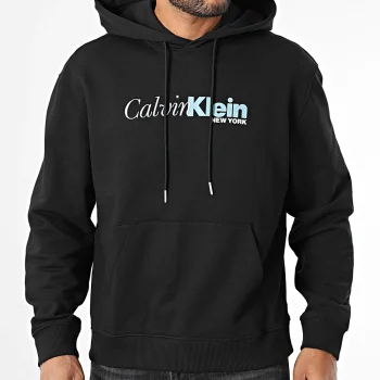 Calvin Klein Men’s Black Printed Cotton Hoodie Sweatshirt