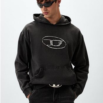 Diesel Men’s Black Printed Cotton Hoodie Sweatshirt