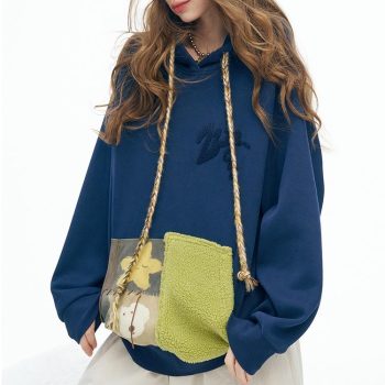 Winter Y2K Loose Hooded Color-Block Pullover for Women