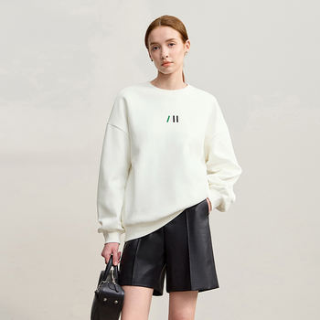 Women’s Winter Loose Knit Sweatshirt with Fur Lining and Embroidery