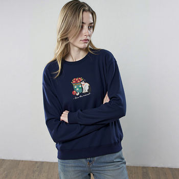 Women’s Winter Cat & Apple Print Loose Crew Neck Sweatshirt