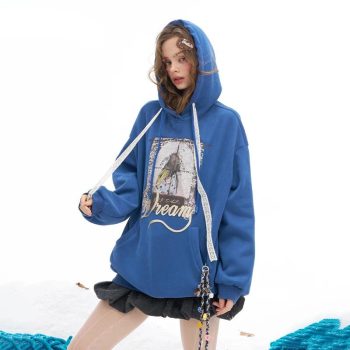 Winter Loose Y2K Graphic Hooded Pullover for Women