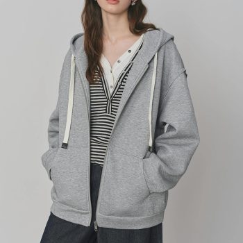 Winter Casual Embroidered Zip-Up Hoodie for Women