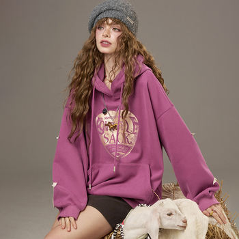 Cozy Winter Suede Hoodie with 3D Bear Embroidery for Women