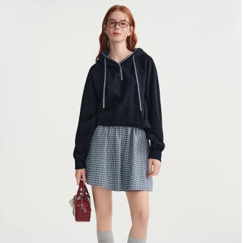 Plus-Size Soft Knit Plaid Hoodie & Skirt Set