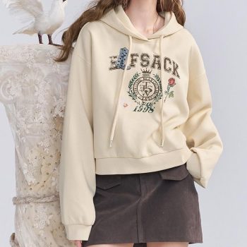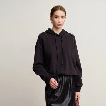 Women’s Embroidered Hooded Knit Sweatshirt Long Loose Pullover
