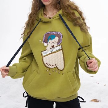 Preppy Casual Hoodie with Sleeping Dog Graphic for Women