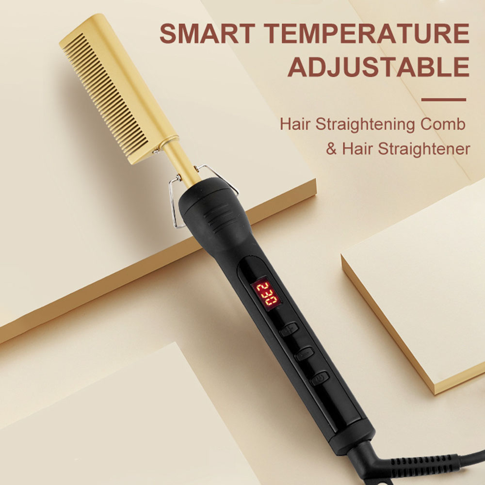 The Hot Comb Straightener is perfect for anyone who wants smooth, sleek hair without the hassle of multiple styling tools. Whether you’re looking to style your natural hair, a wig, or textured hair, this all-in-one comb will give you the versatility you need. Its advanced ceramic technology provides even heat to eliminate frizz, while the adjustable temperature settings cater to your unique hair type. Plus, with a large LCD screen, you’ll have full control over the temperature, allowing for precise styling every time.