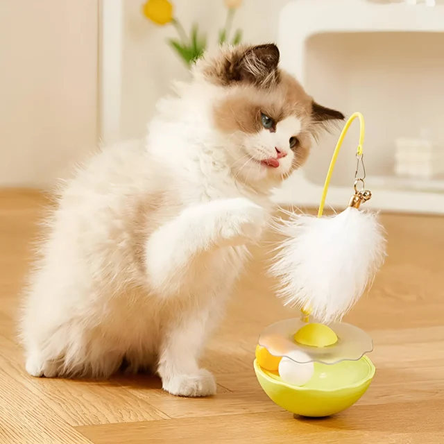 This dynamic tumbler toy is best used during playtime, lazy afternoons, or whenever your cat needs a burst of excitement. Its lightweight design makes it easy for cats of all ages to nudge and spin, while the feathers add an irresistible flutter that keeps their attention locked in. Since it requires no batteries or power, the fun never stops—simply place it on the floor, give it a gentle tap, and watch the chase begin.