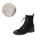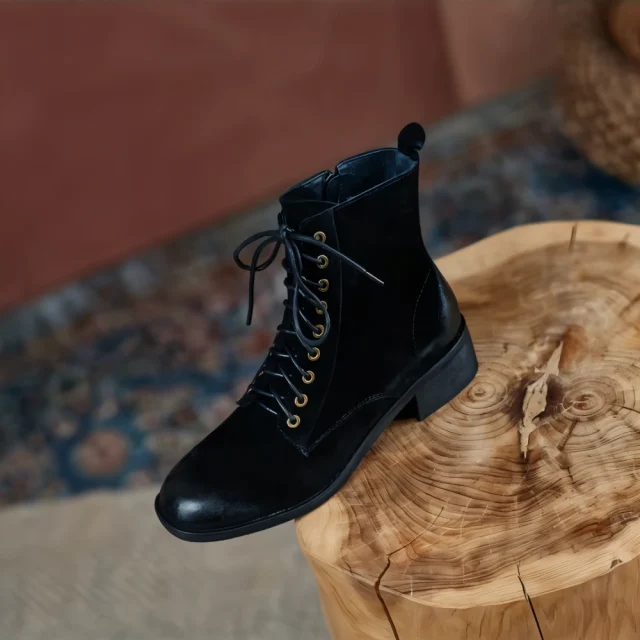 Featuring a blend of vintage design and practical functionality, these ankle boots include both lace-up details and a side zipper for easy wear and a secure fit. The medium-height hoof heel (1.57 in) adds a subtle lift, enhancing your posture while keeping comfort a priority. Available in elegant black and rich brown, they pair beautifully with jeans, skirts, or dresses for any fall or winter occasion.