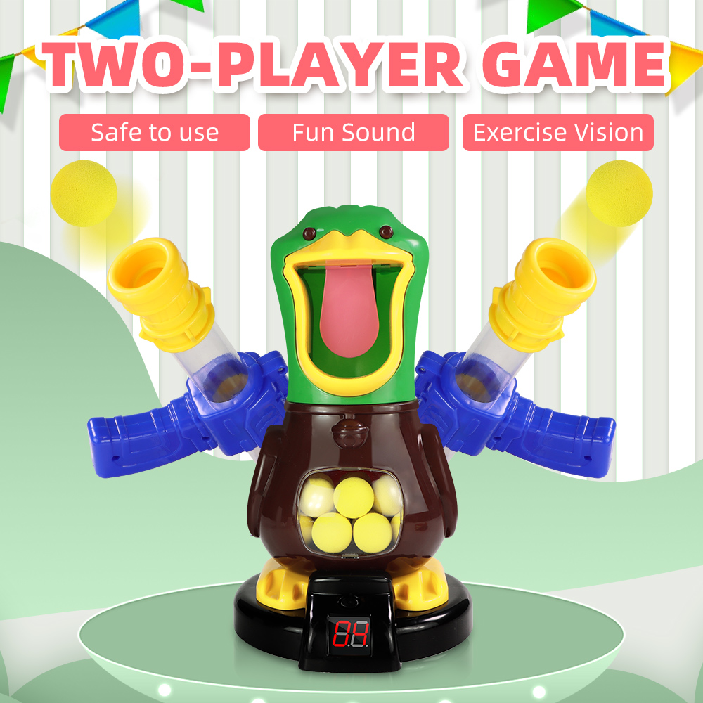 Bring laughter and excitement into your home with the Interactive Duck Shooting Game! This hilarious air-powered blaster set lets kids take aim at a funny duck target, shooting soft foam balls up to 33 feet away. Perfect for children who love action-packed games, it turns any room or backyard into a fun shooting arena. With no batteries required, this toy encourages active play and imagination while keeping things safe and easy to use.